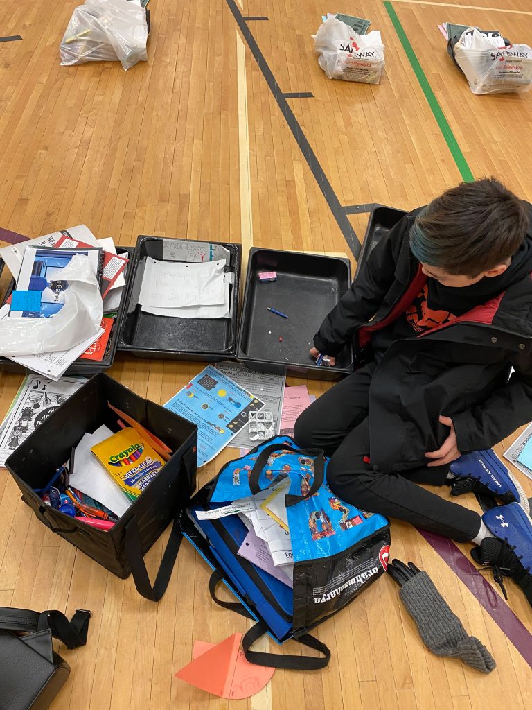 student’s belongings were laid out for students to pick up. Packing up assignments and his indoor shoes were too much to bear. This isn’t how grade six was supposed to end. There won’t be any assemblies marking his elementary years or ski trips or class memories made in Jasper. I took mini to the ravine to walk and we did what you do to keep a sense of normalcy. We talked about video games and zombies.